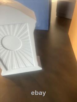 Wedge wood jasperware clock, dancing hours millennium design. Mint condition comes with original box which it has been kept in never been on display. All certificates are still enclosed as when delivered.