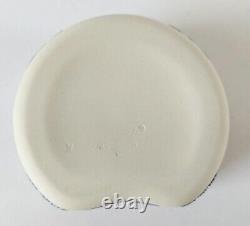 Blue on White Jasperware Aurora and Chariot Bean Box. A Wedgwood blue on white jasperware bean box with blue bas-relief depicting Aurora and Chariot. The bean box measures approximately 7.5 cm long by approximately 5cm deep impressed in the base Wedgwood made in England.