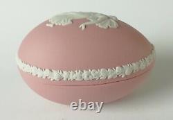 Pink Jasperware Dancing Hours Egg Trinket Box. A Wedgwood pink Jasperware egg shaped trinket box with a white bas-relief of a dancing hours lady. The egg measures approximately 2 3/4 inches by 1 3/4 inches tall and is stamped on the base'Wedgwood Made in England'. The egg trinket has been previously owned but it is first quality and is in very good condition. Terms and Conditions and Other Important Information. We cannot deliver to PO Boxes. Our P&P charges not only include the cost of courier or postal service, but also sufficient packaging materials to protect your delicate item in transit. Cheques can also be accepted, but only from UK buyers.