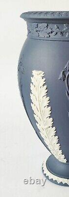 Portland Blue Jasperware Acanthus and Bulrush Vase. A Wedgwood Portland Blue jasperware vase featuring Acanthus and Bulrushes on the outside.