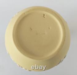 Jasperware Primrose Prunus Bud Vase. An unusual Wedgwood primrose jasperware bud vase featuring a white Prunus (blossom) bas-relief. The vase stands approximately 5 inches tall and is stamped on the base Wedgwood made in England.