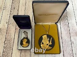 Wedgwood Rare Jasper Jasperware Gold On Black Egyptian Pendants Boxed